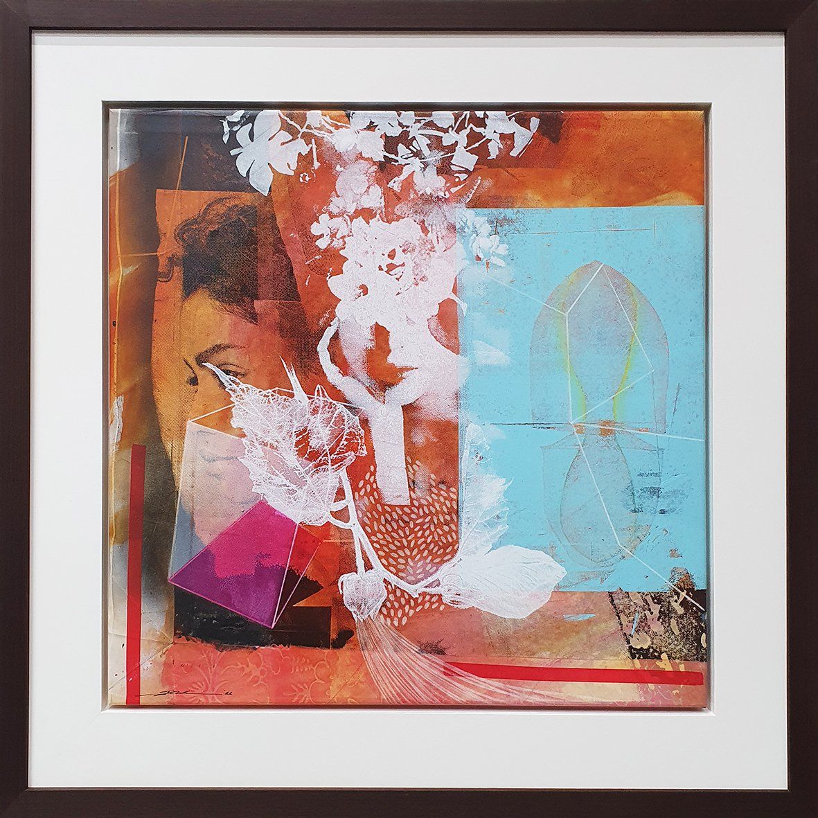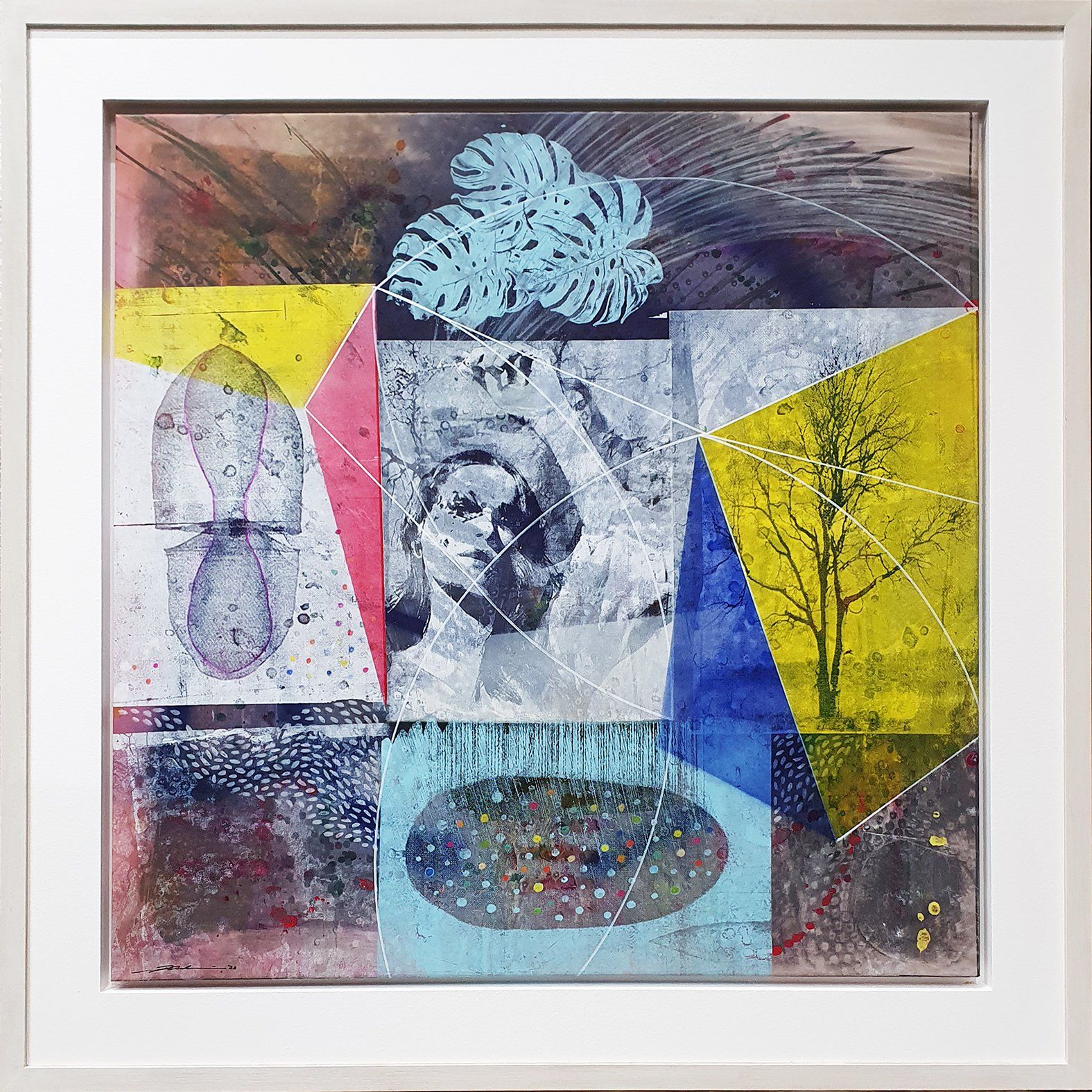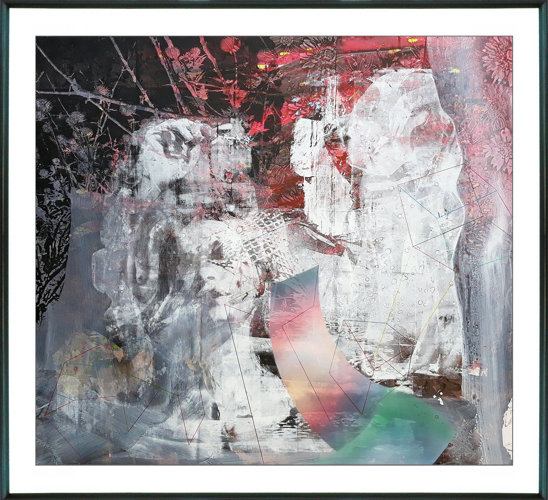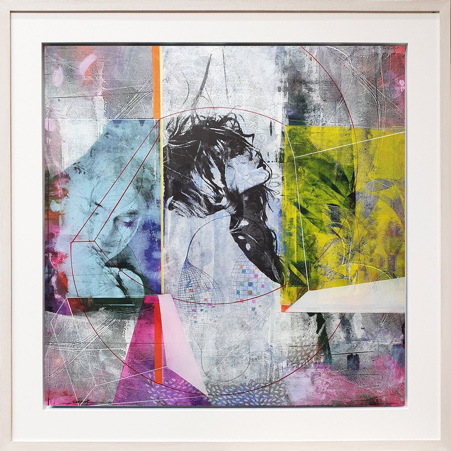 Malerei, Zeichnung und Siebdruck auf Leinwand, 66 x 66 cm