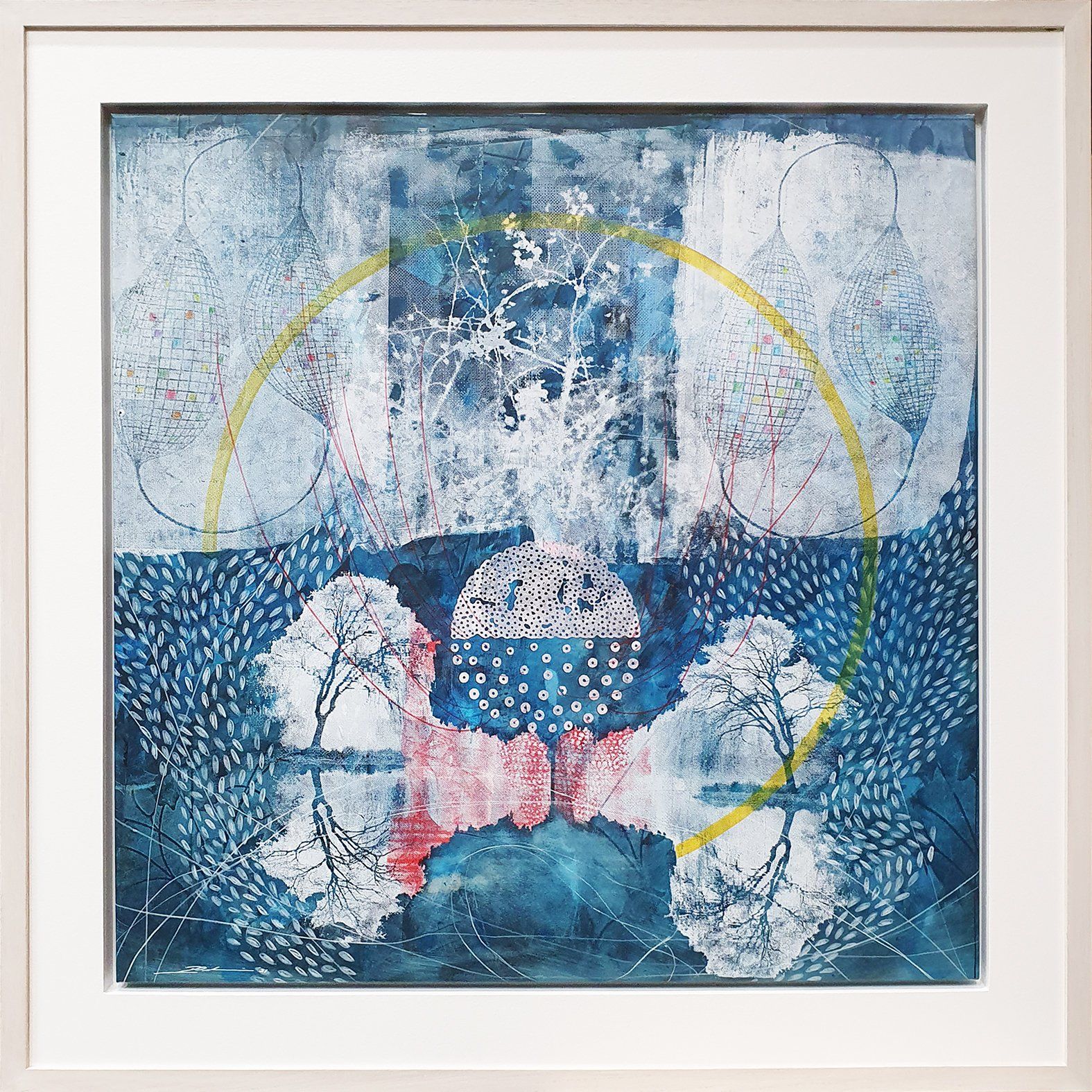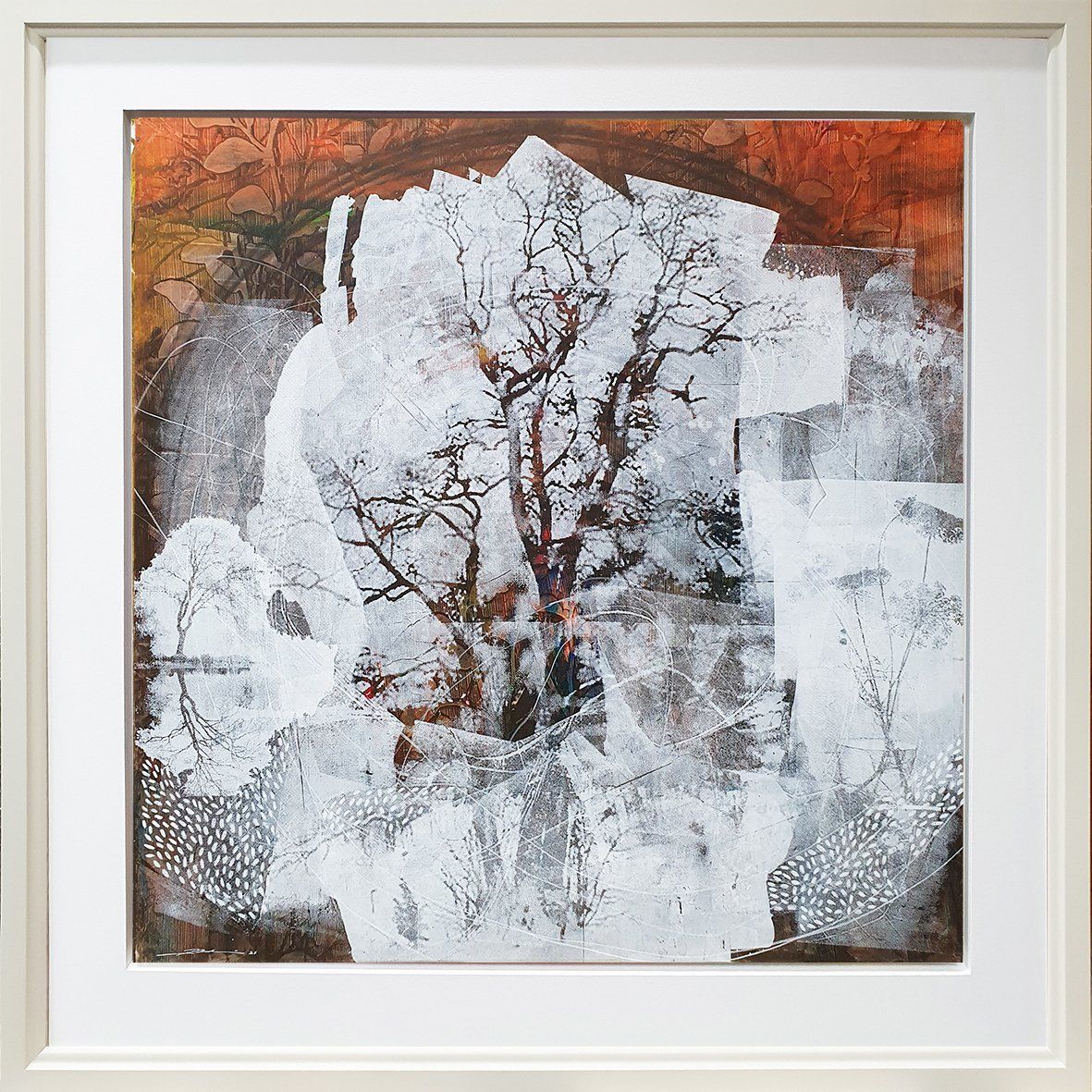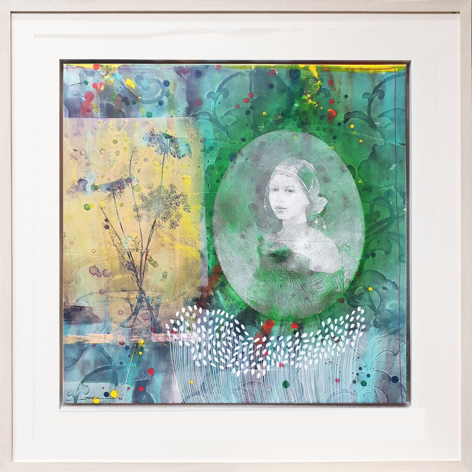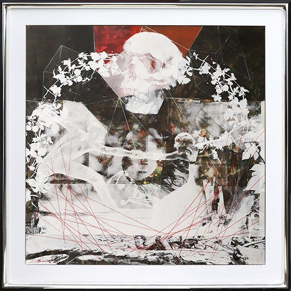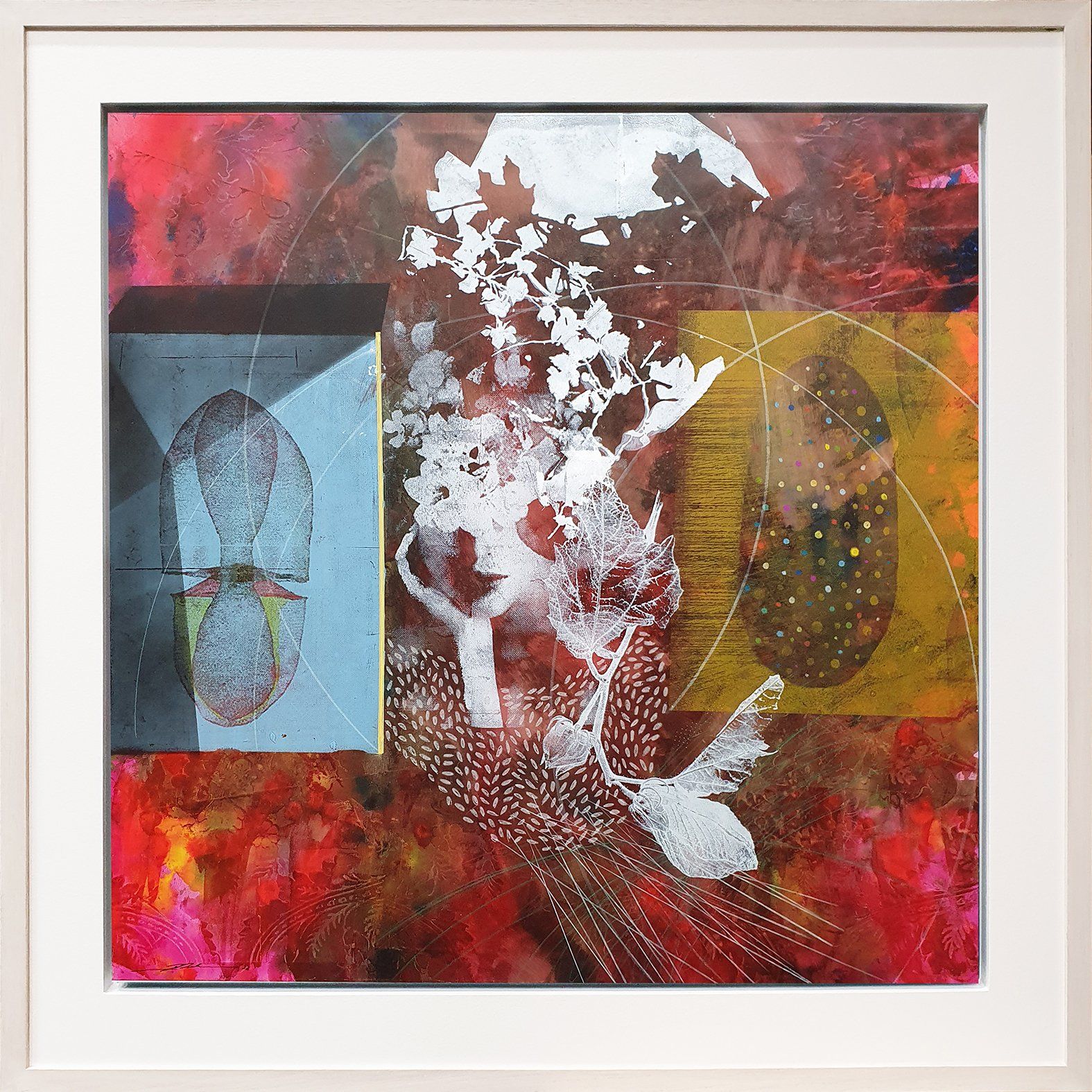 Malerei, Zeichnung und Siebdruck auf Leinwand, 66 x 66 cm