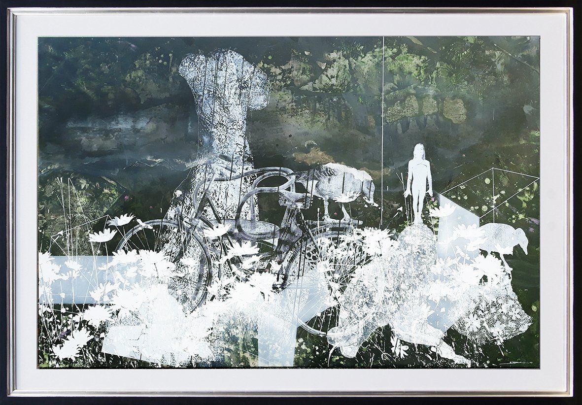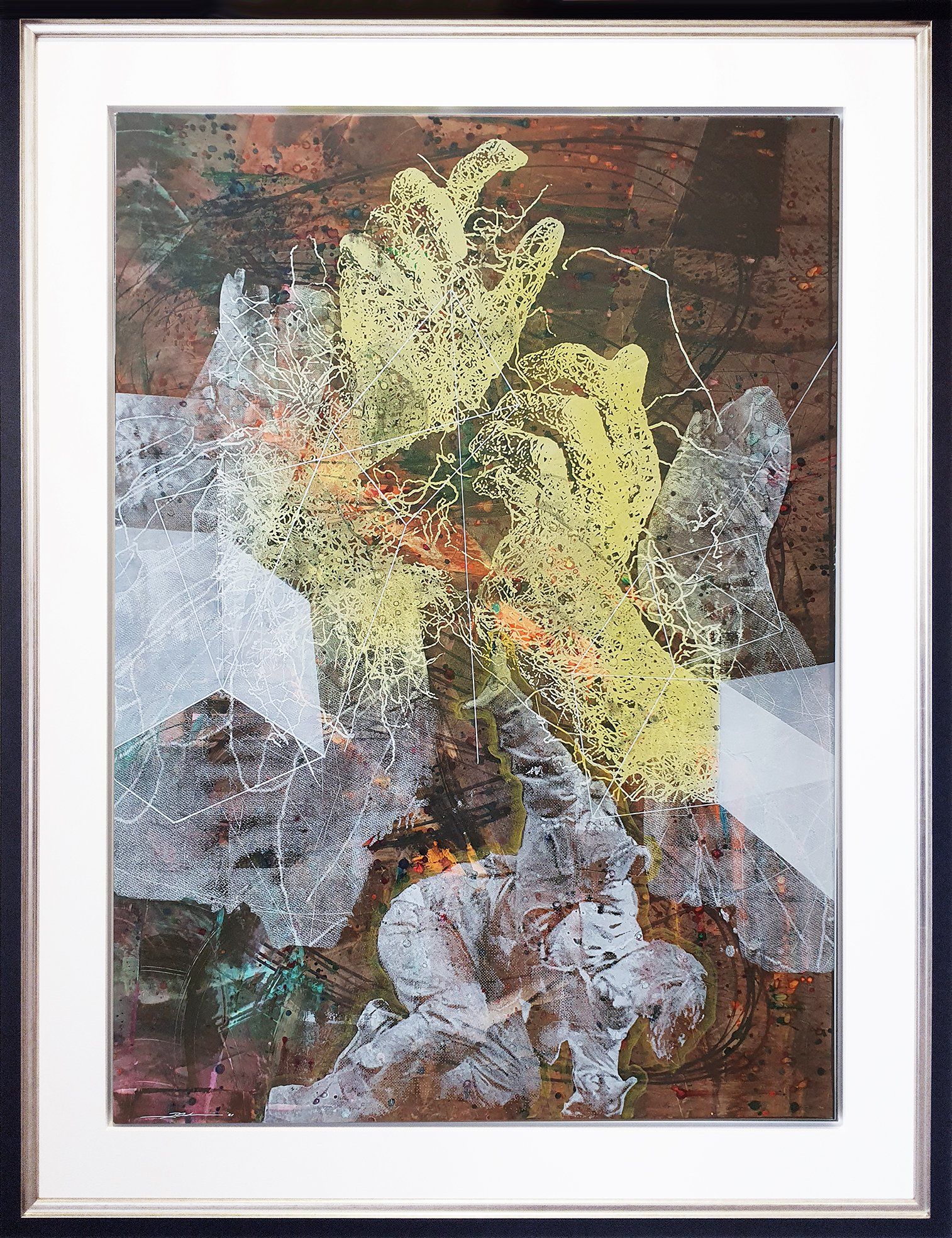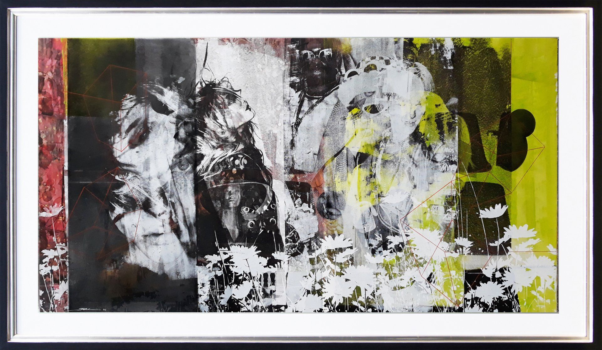 Malerei, Zeichnung und Siebdruck auf Leinwand