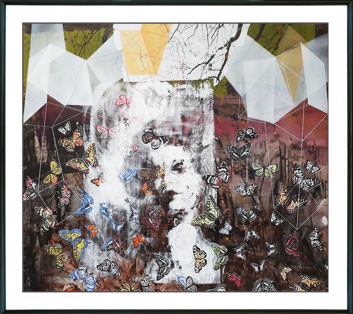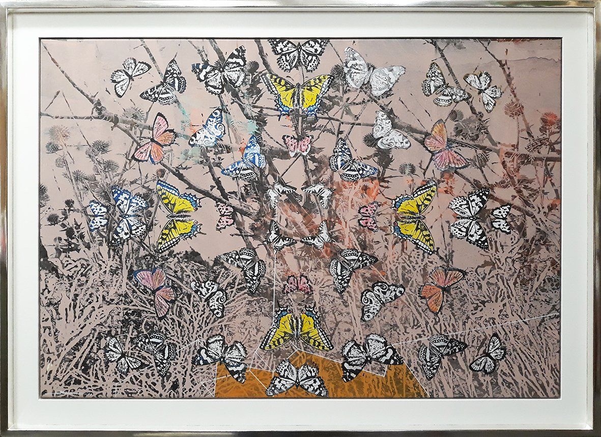 Schmetterlingskunde_Freiheit 2019 Mischtechnik auf Leinwand 140 x 160 cm verkauft